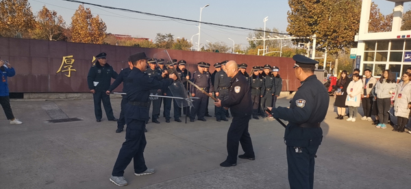 讲座结束后,在高新派出所杨军副所长的指导下,在学校北大门组织了反恐装备的正确使用和带有假想的反恐演练,围绕如何应对校园暴恐事件和突发事件,如何进行有效自救和处置,进行了详细讲解和反复演练。