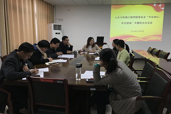 本网讯(通讯员:黄春晓)12月9日下午,土木与环境工程学院党总支开展了“不忘初心、牢记使命”主题教育专题民主生活会,院党总支成员和学院行政班子成员均参加会议。