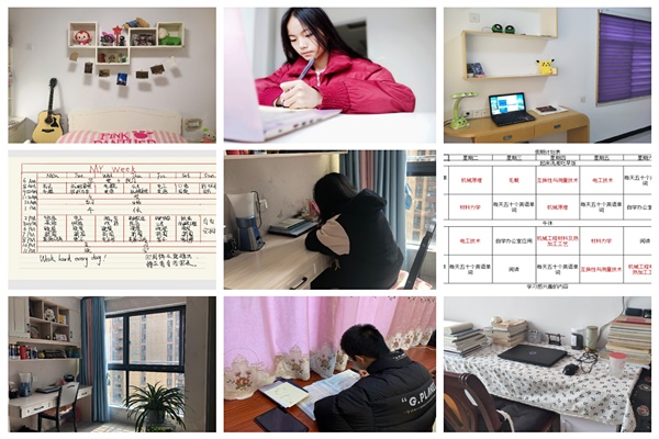活动内容除家庭卧室内务比拼外,还包含家庭学习计划展示,以图表等方式进行制作,形式多样。学院想家长之所想,动员学生,发起了“健康自律”的倡议,推出疫情期间的这一主题活动。活动一出,即得到家长和学生的积极响应,一扫学生在家散漫、懒惰、生活起居不规律等问题,让学生从思想上、行动上都真正开始进入学习状态。同学们按照学校作息时间进行线上课程,以学校宿舍标准要求内务水平,在居家学习期间恢复作息,真正做到“停课不停学”。