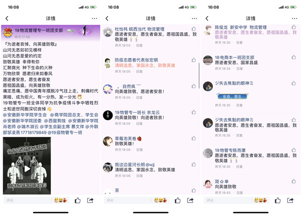学生们纷纷表示,至1月23日武汉封城以来,全国人民经历两个多月的努力,控制了新冠肺炎病毒在本土的蔓延,复工复产以及正常的生活秩序逐步恢复,很多普通的一线医护人员、公安干警,基层社区工作人员,牺牲在这场没有硝烟的战役中,他们是一线烈士,是英雄。还有不幸感染的人民,他们是我们的家人、亲人,同胞,值得我们铭记。下半旗致哀,是全国人民对逝者表达哀悼与追思的仪式,默哀三分钟,让我们铭记这一场国家战役,让我们铭记身边的英雄。