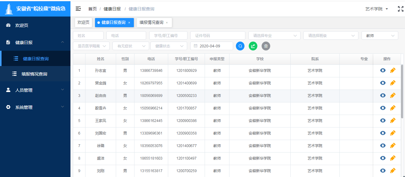 学院召开安全工作专题会议,要求所有全体教职工每日如实上报个人的身体状况并对其家庭成员状况进行摸排,掌握教职工动态的详细信息;要求全体学工人员保持24小时沟通无障碍,工作时间线上打卡,充分做好学生的相关情况统计并按时每日上报,做到监控不留死角,保证掌握师生的安全情况。