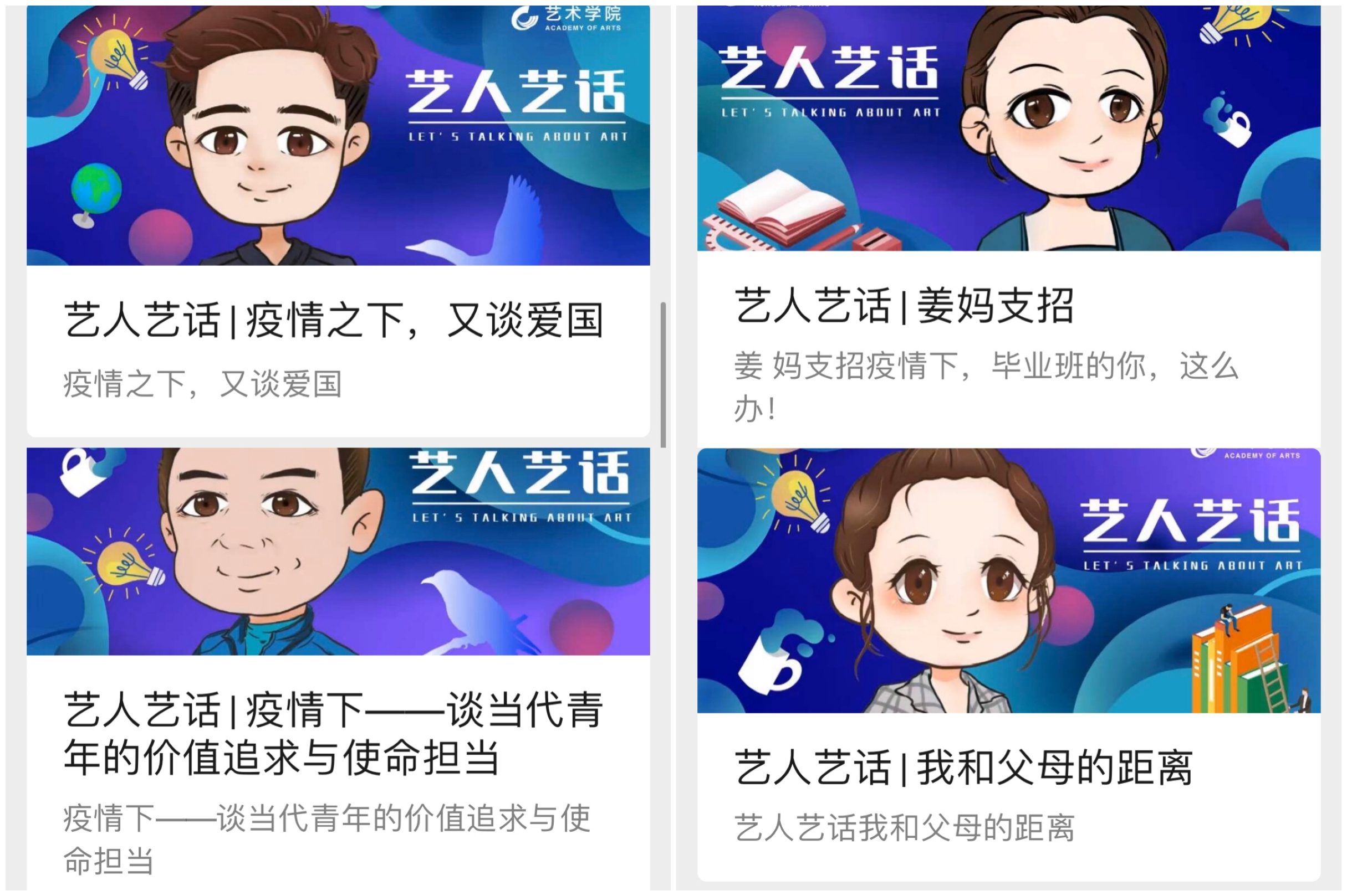 艺术学院自2019年4月在学院微信公众号中创立了“艺人艺话”专栏,该专栏以学院学工团队为主要创作力量,专栏以理论宣讲、实践指导、工作所悟等方面的原创文章形式呈现,每周一期,通过“文字的力量”凝聚青年、引导青年、服务青年。各位老师通过对比自己现在和一年前文字的差距成长,对比自己和他人文章的风格差异(以本期的理论宣讲为主题),分析自己的优势和劣势,从横向和纵向两个层面的剖析自身写作特点,明确自己今后进步的方向和空间。随后,辅导员们展开自由研讨,研讨内容聚焦在“如何提升个人理论素养”和“如何将理论知识与实践工作完美结合”上。艺术学院院长助理郑妮针对参会老师提出的问题进行了一一解答,她强调,作为学工人员要明确自身职业定位和职业要求,明确政治立场,增强自身理论学习水平,不仅要学习理论知识,更要将理论知识内化、吸收,这样才能在日常的工作中善用理论指导实践工作,积极发挥新时期高校辅导员育人功能。