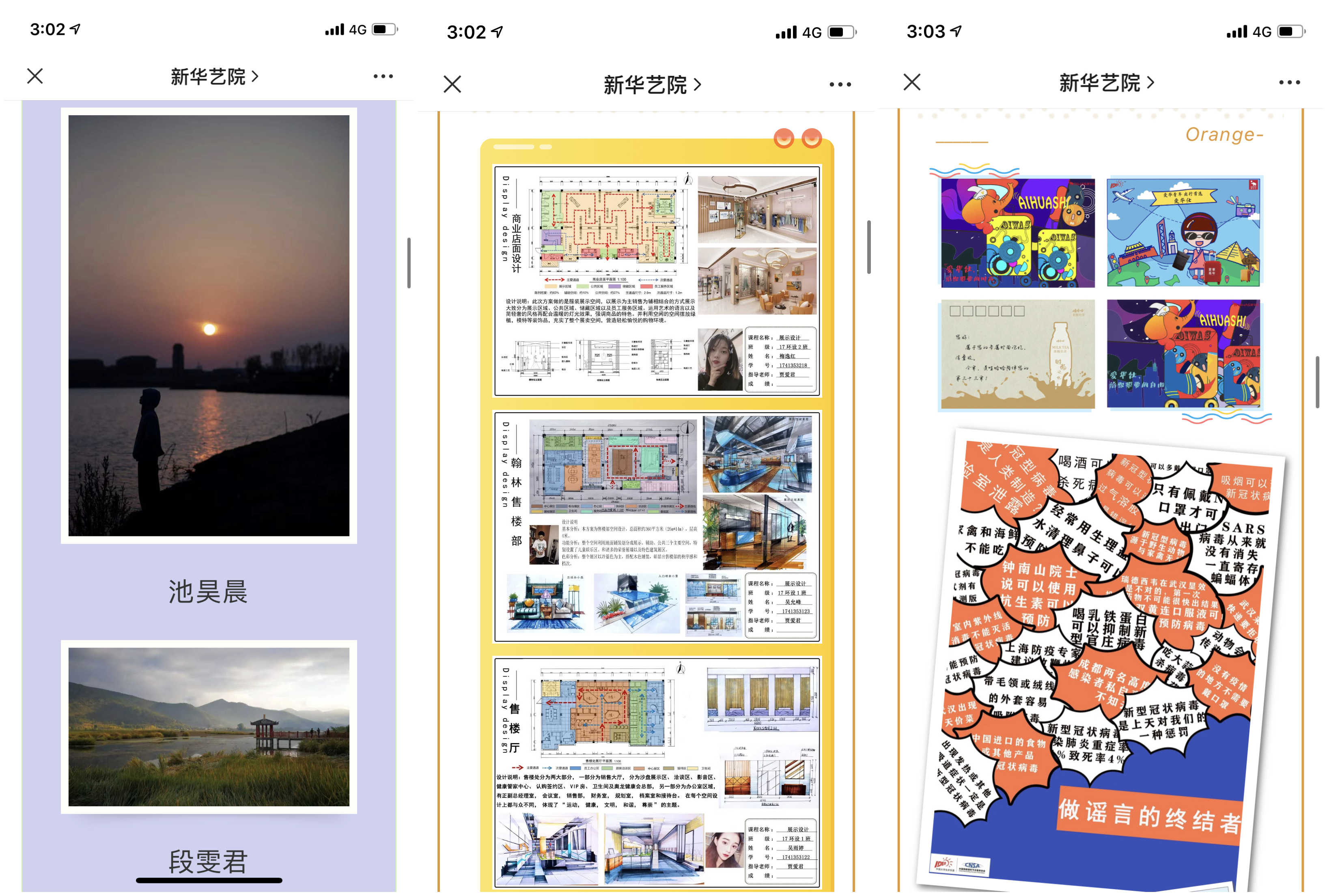 艺术设计系教师贾爱君在《展示设计》课程中积极引入项目式教学,通过对案例的比较分析,鼓励学生发现问题、解决问题,并引导学生利用专业知识对项目进行创造性设计,创作出了排版精美、立意精确、设计精妙的设计作品。