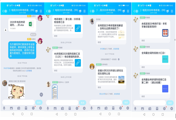 早在2月中下旬疫情防控、线上办公期间,学生考研成绩陆续公布时,在学院领导的指导下及时建立了电院2020年考研调剂和复试指导交流群,根据学生报考的专业为学生安排了专业教师对接,解答学生关于调剂、复试等一系列问题。做到教学、学工联动,形成一支强大的考研帮扶团队,针对考生的自身特点及报考情况进行针对性指导。同时邀请华园考研中心老师进入群聊,为考研学子加油助力,解疑答惑。