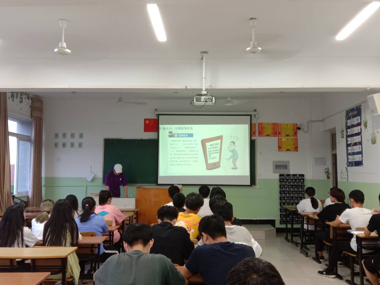 6月10日至6月13日,信息工程学院收集整理各类防骗视频,并统一组织,规定时间规定地点,要求各班级进行防电信诈骗知识学习。视频中各类生动形象的案例,令学生们既了解到各种诈骗类型,如:假冒公安机构诈骗、以提供低息贷款为诱饵诈骗,也学习到诸多防范诈骗的知识。
