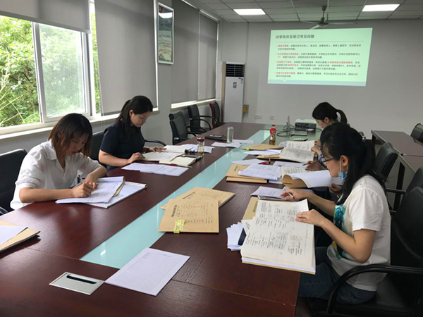 会上,濮明月首先强调了召开此次试卷专项检查的必要性,要求各位老师做到高度重视、严格标准、责任到人、狠抓整改、总结提高,及时发现试卷中存在的问题并尽快整改。张璐仔细解读了试卷检查相关标准,布置了检查内容,主要包括核分是否准确、试卷分析是否完善、装订顺序是否正确、是否流水批阅以及阅卷复核人是否签字等。接下来,全体教师依次抽取四份试卷并记录在案,在自查与系部互查的基础上再次认真审查试卷。各位教师积极配合,本着严谨的工作态度逐一记录检查中发现的各项问题,填写试卷反馈整改表。教师们通过互查不仅可以沟通存在的各种问题,还可以交流各自的评卷阅卷经验,是改正错误的机会,更是学习进步的机会,提高了教师的综合素质能力。