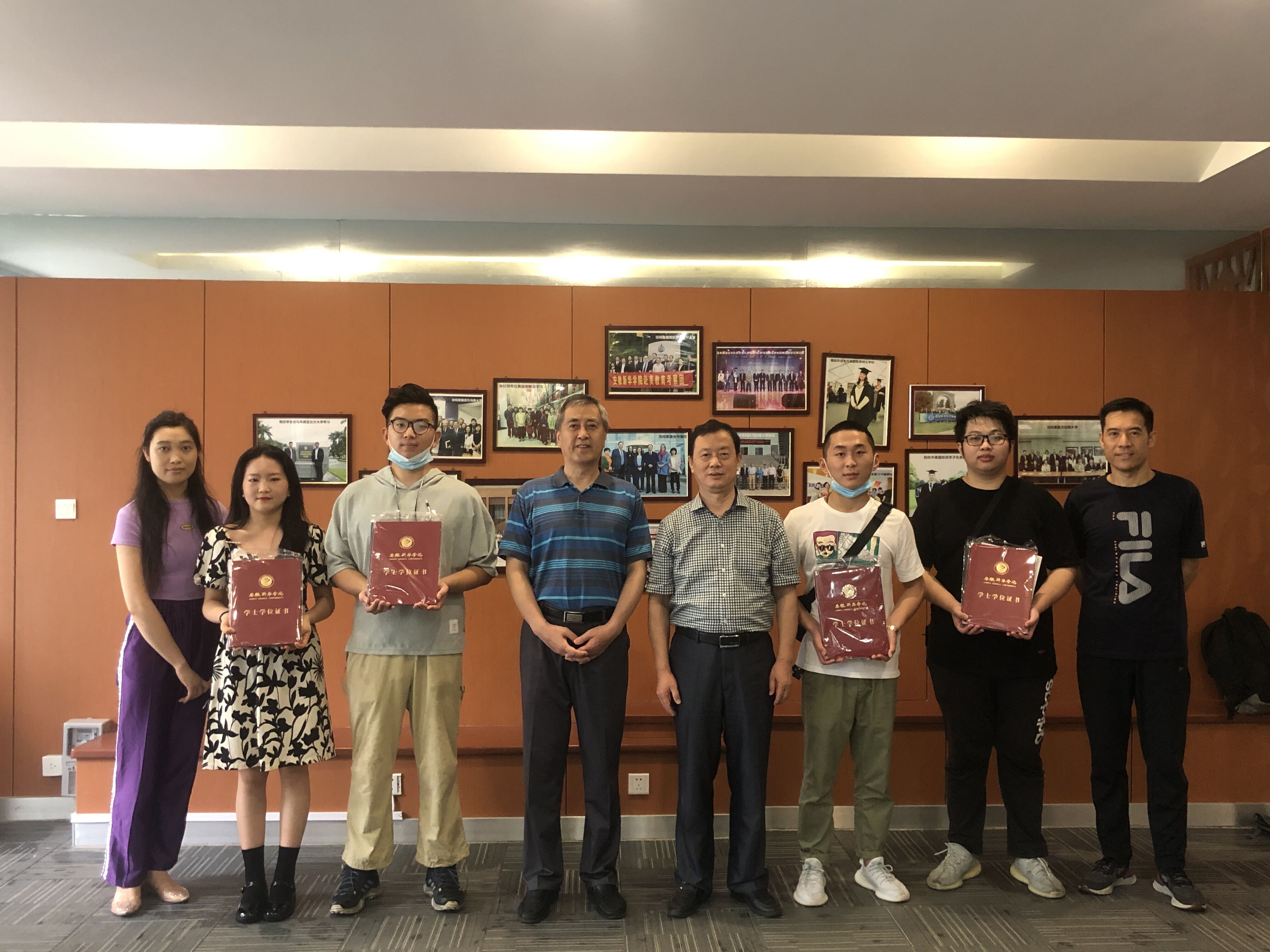 在离校手续办理现场,国际教育学院执行院长徐鸣和院长范东生为毕业生颁发毕业证和学位证,毕业生们纷纷表达了无限的留恋与感激。
