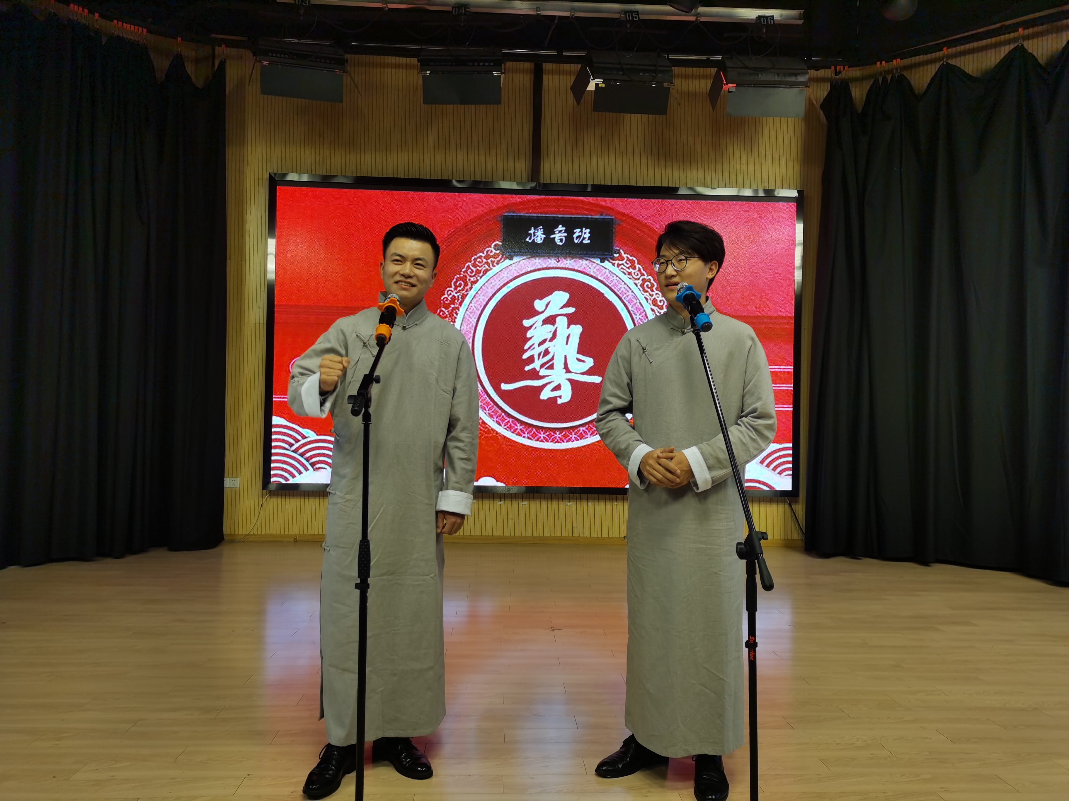 本次毕业汇报演出内容丰富,精彩纷呈,有相声、吐槽大会、配音秀、歌曲、主持串烧、朗诵等。其中由齐汪顺和王敬磊带来的相声表演《毕业了,你都学了啥?》获得了老师们的一致好评,两位同学用幽默的表演将晚会的气氛不断推向高潮。