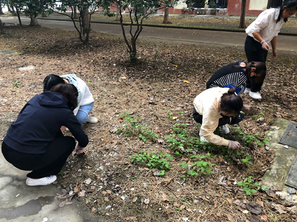 整装待发后,志愿者们带着清理工具,开始了清理活动。他们不怕脏、不怕累,相互配合,认真清理卫生死角,积极为建设文明校园贡献一份微薄的力量。
