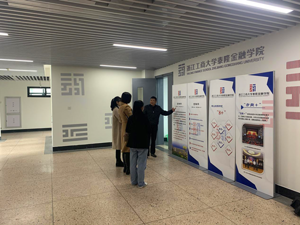 12月1日上午,永利官网一行人考察了浙江工商大学泰隆金融学院,学院办公室主任夏连峰详细介绍了金融学(小微、普惠金融人才)专业的合作办学模式、学科专业建设、课程体系、师资配备等情况,并就本科生人才培养方案制定、实验室建设与发展、产学研合作教育推进等问题与永利官网教师进行深入交流。浙江工商大学泰隆金融学院是国内首家培养小微、普惠金融高端人才的体制机制创新试点学院,是浙江省政府实施高等教育强省战略、推进产教融合和高等教育体制机制改革的先行项目。考察组对该学院的产学研合作教育、师资队伍建设和学生活动开展等方面收获颇丰。