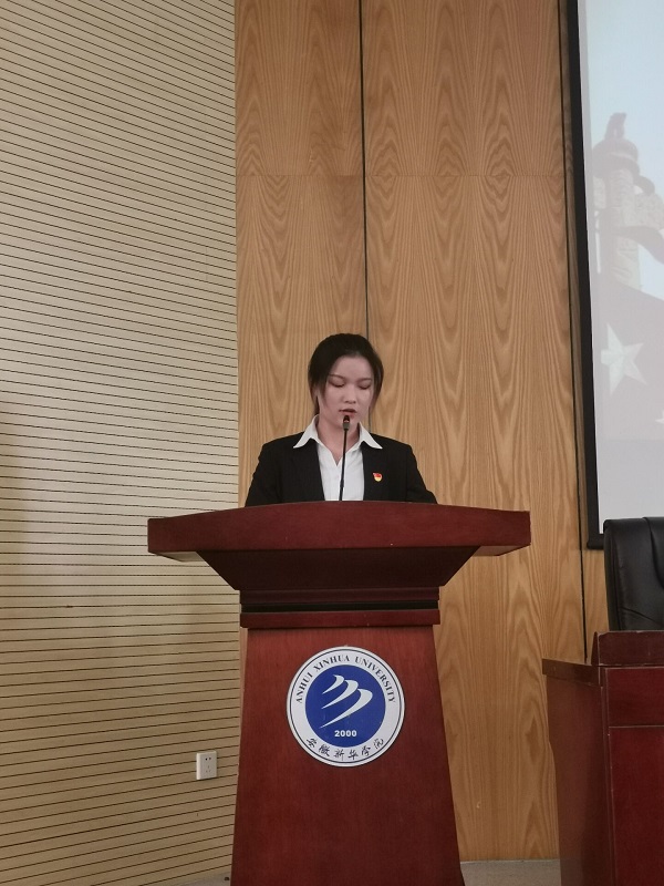 耿肖肖代表艺术学院全体学生党员和学生干部发言。她表示,作为党员和学生干部,她非常认同学院党总支对大学生文明养成教育的高度重视;她认为,宿舍文化建设就是一种素质养成教育,党员和学生干部宿舍授牌活动,是学院加强学生干部教育管理和提升学生党员自身修养的重要举措,让同学们意识到党员和学生干部宿舍既是一种荣誉,更是一份责任,并代表全体学生党员和学生干部做了保证,努力做好各项工作,以身作则,全面推动学院各项事业向前发展。