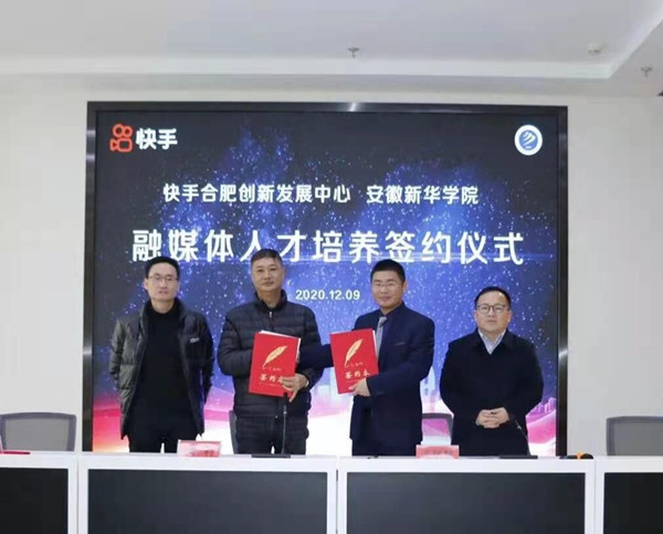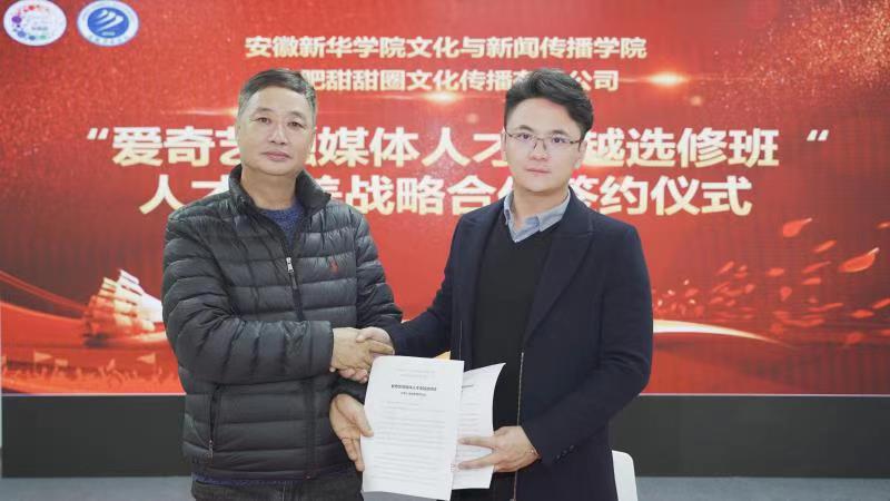本报讯(通讯员:洪玉)为切实加强“融合多学科,建设新文科”的建设目标,加快网红人才培养基地建设,培养融媒体营销、运营、服务人才。日前,文化与传媒学院分别与快手合肥创新发展中心、爱奇艺奇秀平台内容提供第一MCN机构-----合肥甜甜圈文化传播有限公司签署合作协议,共同打造“快手融媒体人才卓越选修班”和“爱奇艺融媒体人才卓越选修班”,订单培养融媒体营销、运营、服务人才,并联合组建工作坊,培养头部“网红”人才。