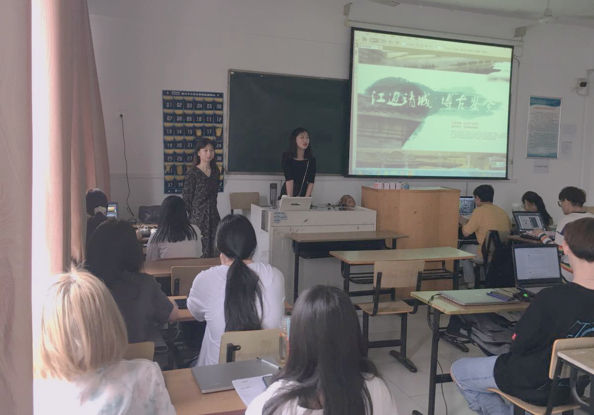 韩蕾讲授主题为《如何进行设计方案汇报》,结合《靖江市文化展馆设计》汇报方案进行分析,讲述该展馆的设计理念、陈列方案、展项设计和视觉系统。从设计前期的资料收集、设计工作的基本程序、设计方案的汇报技巧、设计师应该具备的职业素养等几个方面内容进行深入讲解,还耐心回答学生的提问,与学生进行专业上的交流。