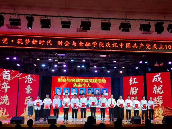 晚会中,财会与金融学院还对2020-2021学年中积极参加党团活动、学科竞赛的个人和集体进行表彰,希望全体财金学子以先进为榜样,不断提升思维品质、探索精神和创造才能,努力增强全体党员责任意识与爱国情怀。