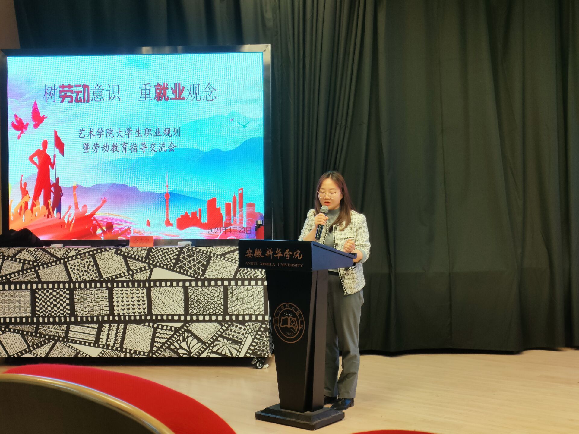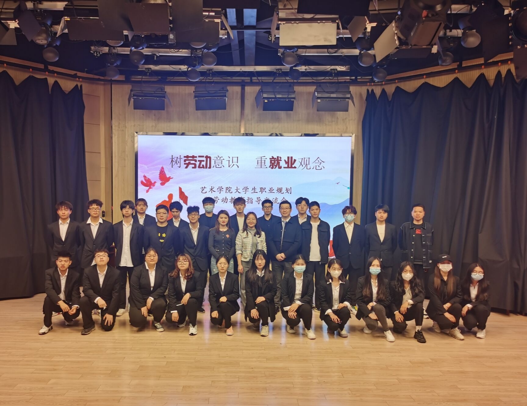4月23日,艺术学院在文传演播厅举办“树劳动教育、重就业观念”大学生职业生涯规划暨劳动教育主题交流会。艺术学院院长助理彭智,艺术学院劳动教育课外导师李志宁及辅导员代表参加了本次会议,会议由彭智主持。