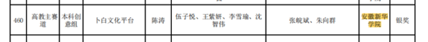本届竞赛共有来自全省160余所学校、9万余个项目、近60万人次参赛,经过激烈的角逐,永利官网文化与传媒学院2019级汉语言文学专业陈涛、2019级汉语言文学专业伍子悦、2019级广播电视编导专业李雪瑜、2018级新闻学专业王紫妍、2017级广告学专业沈智伟同学的《卜白文化平台》项目荣获安徽省银奖( 指导教师为张皖斌、朱向群) ;2020级汉语言文学专业李金存、2020级汉语言文学专业张乐、2020级汉语言文学专业谢程程、2020级汉语言文学专业董莎莎、2019级广告学专业王秀玲、2020级药学专业张思懿、2017级国际经济与贸易专业王银银同学的《岳西草堂》项目荣获安徽省铜奖(指导教师为阳丽、汪恒宇)。