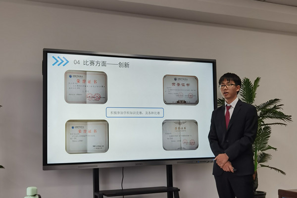 会议中,申请人通过精心准备的PPT一一展示了自己在校期间思想表现、学习成绩、创新能力、社会实践、综合素质等方面取得的突出成绩。他们的精彩汇报,赢得了在场师生的阵阵掌声。