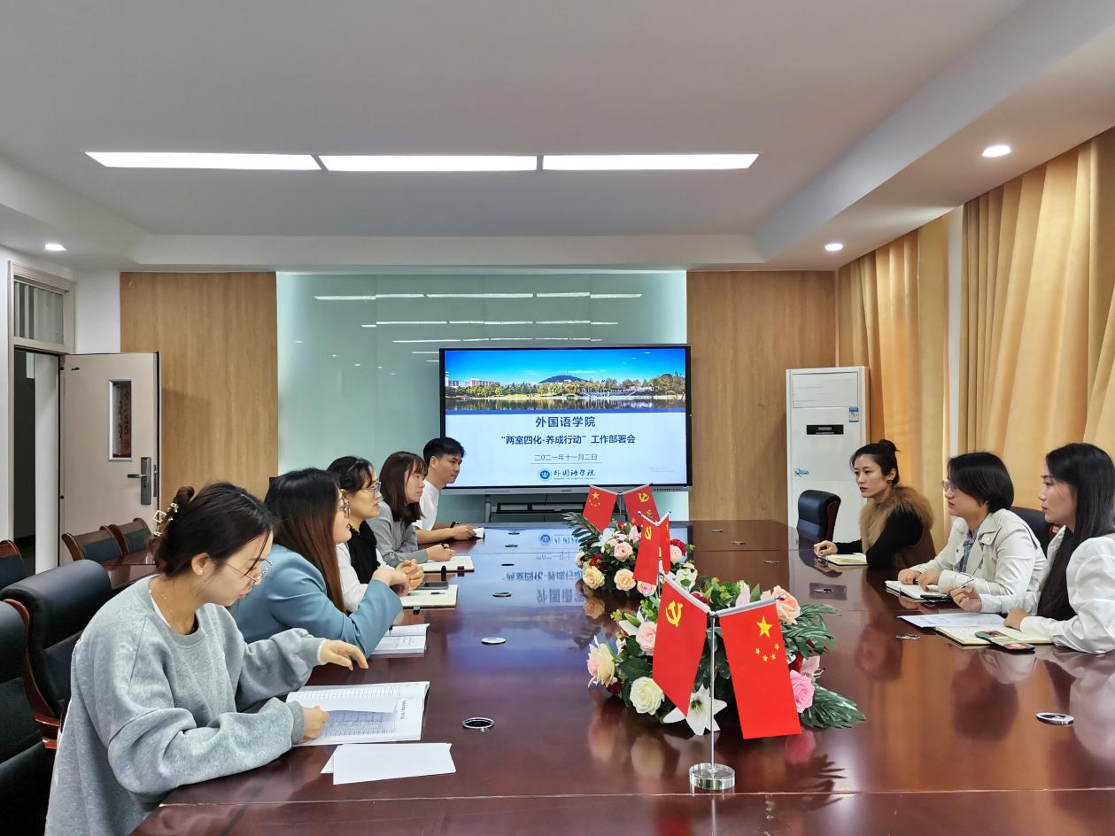 随后,外国语学院学管秘书张婷婷宣读了皖新院外2021【12】号《关于开展外国语学院“两室四化·养成行动“活动的通知》 。同时,参会人员共同研讨活动方案,梳理工作思路,确保扎实推进活动顺利开展。