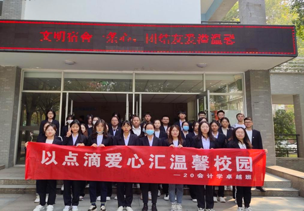 “一人是人,二人则从,三人成众。”财会与金融学院将持续以班级为单位,陆续开展爱心志愿活动,提升学生的道德素养,在校园中传播文明,传递爱心。通过系列的专项活动,将“两室四化、文明养成”活动,落细落小落实,主动内化深入到学生心中,养成良好的学习和生活习惯。