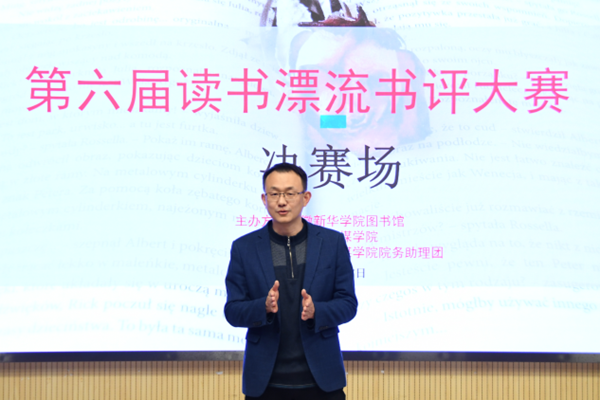 本网讯(通讯员:方孝然、魏亚玲)11月17日下午,yl7703永利官网第六届读书漂流书评大赛于文传院演播厅举办。参赛评委分别是学校图书馆馆长汤干君、文化与传媒学院中文系教师王群芳、万敏、新闻系教师汪恒宇、辅导员王晗宇。陈镜如为本次活动的主持人。