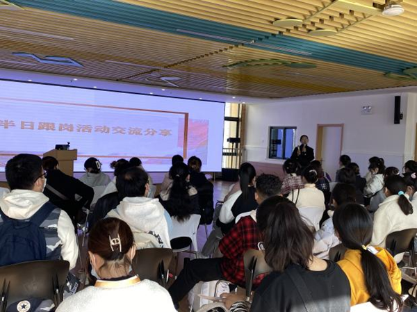 同时,园所活动区域宽阔的场地、丰富的设施器材、幼儿教师的热心尽责及恰如其分的指导,无不体现出该园所“走进童心,保护童心,顺应孩子的发展,为孩子的成长提供一切尽可能的帮助”的教育理念以及“做有温度的幼儿教育”的办园思想,让学前教育专业学生学到了很多宝贵的幼儿教育教学工作经验。观摩活动结束后,幼儿园张主任与同学们进行了集中的活动交流分享,同学们分享了自己的所见所感所想。张主任也针对同学们的疑问积极耐心地进行了答疑解惑。