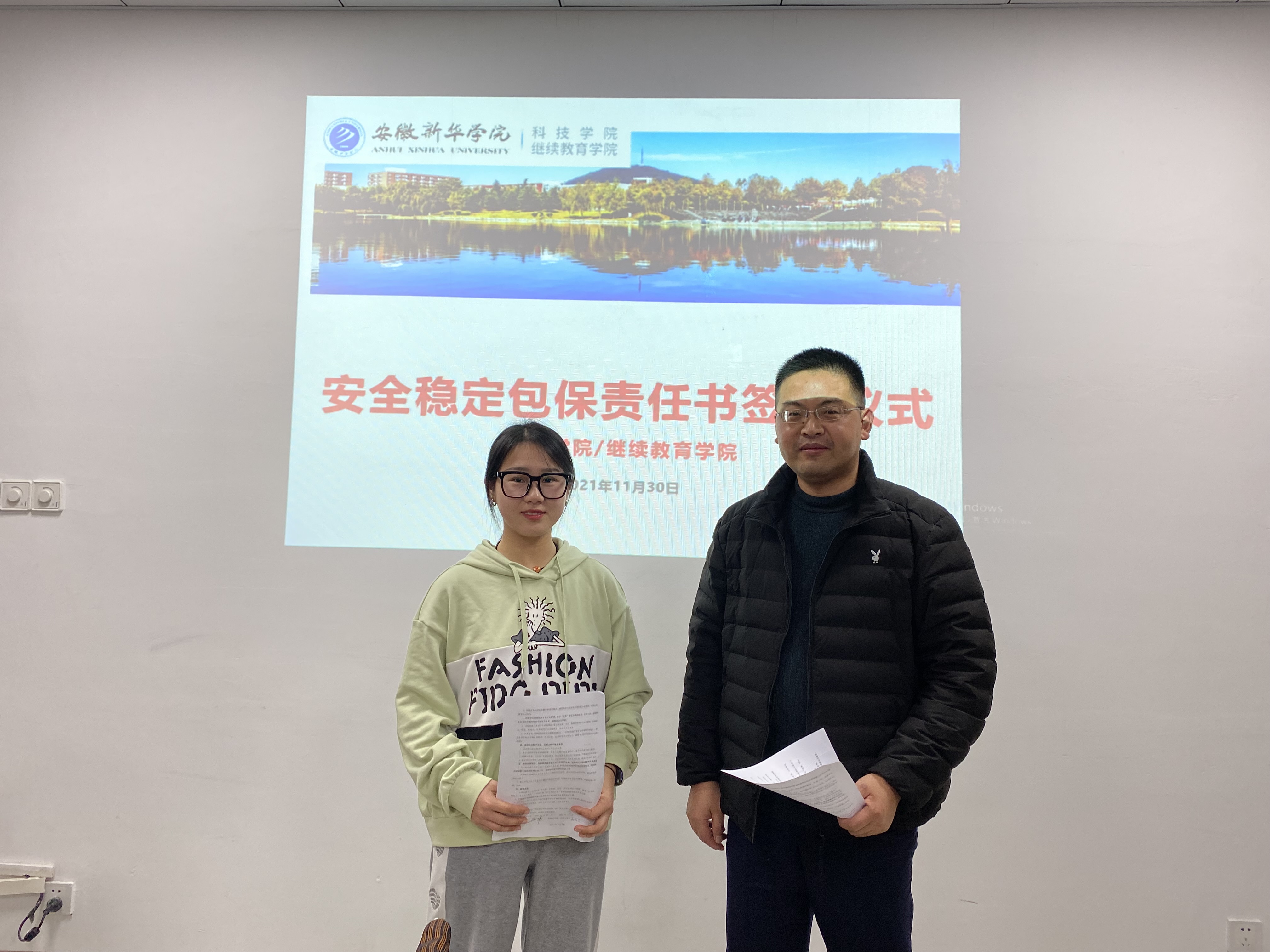 会后,学院领导与各校企合作项目负责人、辅导员代表分别签订安全稳定包保责任书。