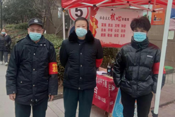 临近春运,全国各地疫情变化性大,防控形势依然严峻,药院学子返乡后,主动到社区或村委会报到,积极投身到疫情防控志愿服务中。21药学三班王雪纯舍小家,顾大家,作为公益志愿者,全力配合交管部门坚守在防控一线,在颍上县高速高铁站进行昼夜轮岗执勤,为市民守护平安。21药学二班戴凯凯在蒙城县庄周乡万湖社区参加疫情防控工作,主要负责前往小区入口外来人员车辆的安康码、行程码的检查,以及小区全体人员的核酸检测预登记。他说:“天气寒冷,但心是热的,很高兴能为疫情防控做一些力所能及的贡献。”