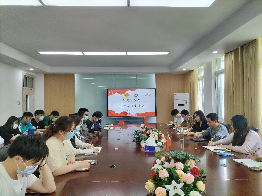 本网讯(通讯员:张婷婷)4月23日上午9点,外国语学院在教(10)324会议室、101智慧教室同时召开了疫情防控下思想动态座谈会。学院党总支书记杨磊、副书记陈丽及其他总支成员、辅导员、班级代表参加了此次会议。