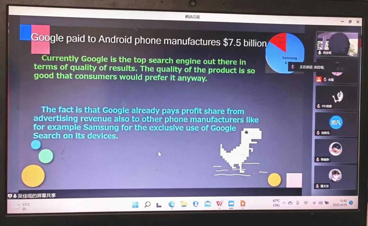 本次比赛要求参赛选手针对某一真实企业选取某一具体业务进行系统的商业分析”为主题,每个参赛团队由3-5名学生组成,以PPT演讲的形式展开比拼。在项目解说中,参赛小组都展现出了外院学子扎实的语言功底和良好的专业素养。面对评委的犀利提问,选手们沉着冷静,机智应答。经过激烈的角逐,由外国语学院和财会与金融学院共同组成的团队获得选拔赛一等奖,成功晋级安徽省复赛。