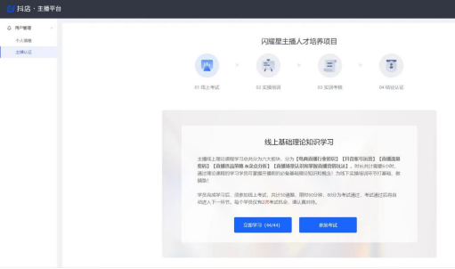 依托校企合作,本次训练营将由来自传媒行业一线从业者,有丰富的实战经验赋能加持的抖音官方认证导师进行授课。其以抖音官方课程为核心,通过“讲练结合+实操经验分享+在线针对性答疑”的闭环式授课模式。同时,还将设置抖音官方考核环节,通过考核的学生可获得抖音官方认定的相关主播资格证书及宝贵的就业机会。