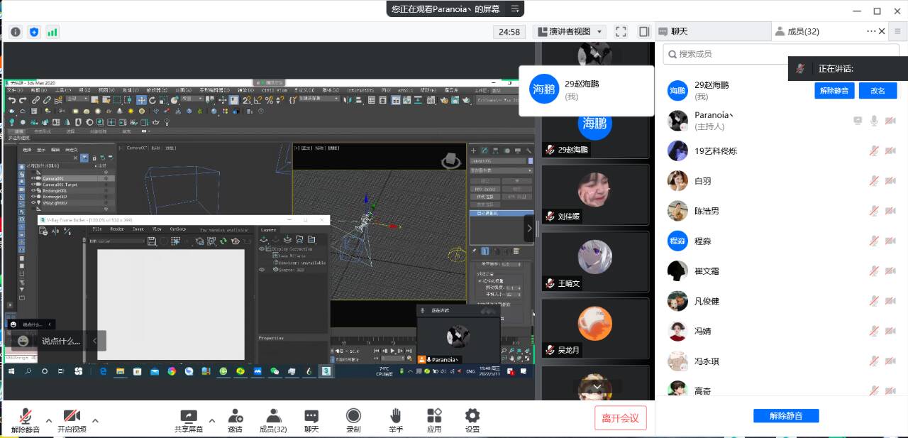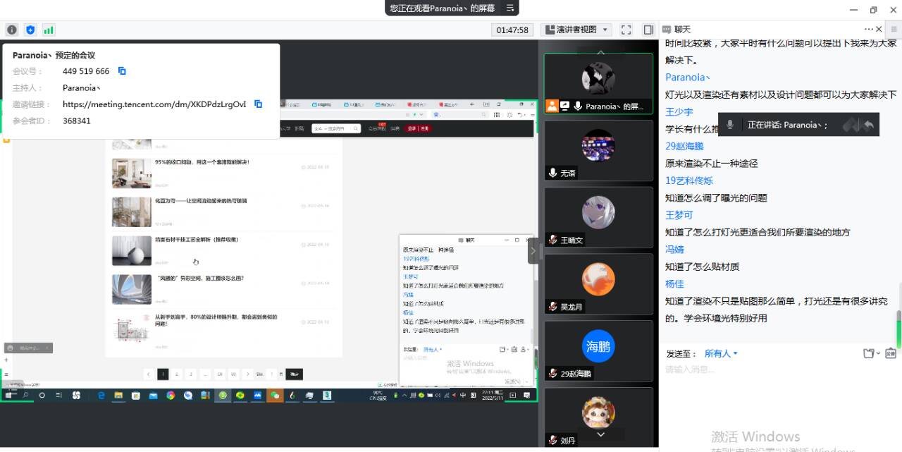 同时,结合该班级学生的展馆设计案例,设计师从灯光、材质和渲染三个角度做了详细的案例演示,对学生的设计思维和设计能力起到了很好的点拨作用。设计师指出,市场上会展方向设计师人才紧缺,希望同学们能够结合行业标准和人才需求,能够明确目标、坚定信心、激发能力、沉淀学习。
