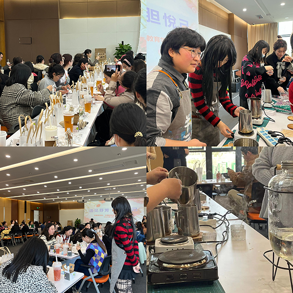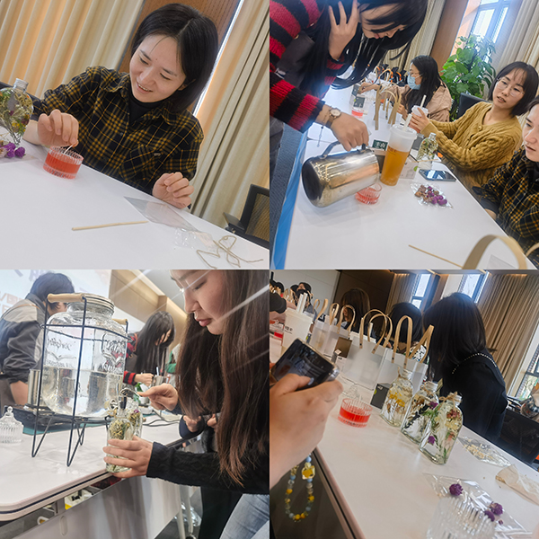 本次活动,外国语学院/国际教育学院邀请了山田画作工作室为广大教职工带来了别具一格的干花香薰蜡烛手工DIY,每一位女教师都在老师的专业指导下,用分发的干花、烛台、baby油和融化后的蜡烛等材料,进行了手工创作。部分教师进行小组创作,分别DIY专属于自己的香薰蜡烛。按照老师的指导,先将蜡融化,再加入香香的精油,慢慢地倒在模具中,静静地等待蜡烛的成型,同时为自己的蜡烛点缀上五颜六色的花瓣。场内芳香四溢,浮游香薰灯里能够保鲜花朵最美的状态,又可以飘散出优雅的香味,让女教师们增添的幸福感和愉悦感,同时也增强了整个团队的凝聚力与创造力。