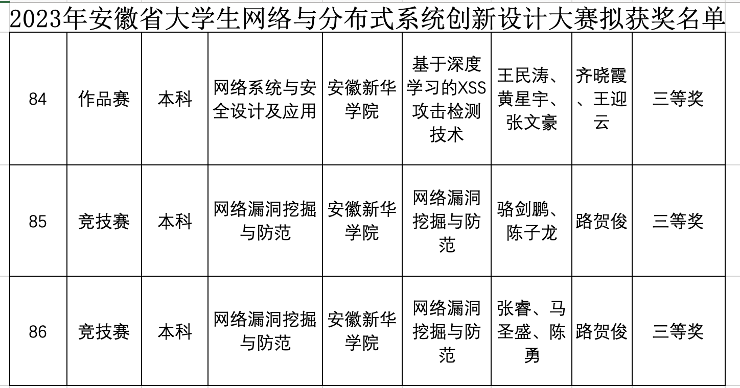 喜报!永利官网学子在2023年安徽省大学生网络与分布式系统创新设计大赛中喜获佳绩