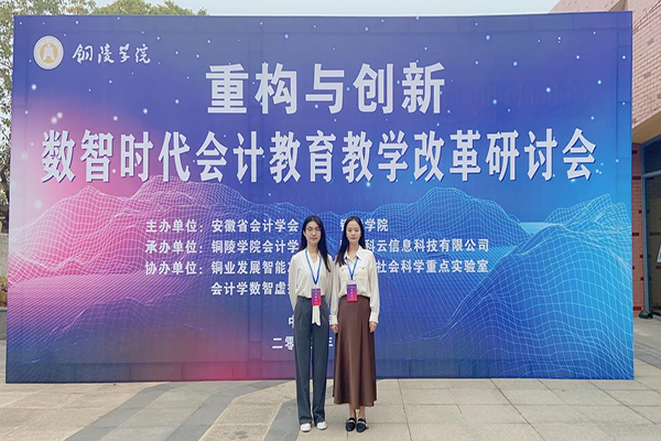 本网讯(通讯员:周东芝)近日,“重构与创新”数智时代会计教育教学改革研讨会在铜陵召开。本次研讨会由安徽省会计学会与铜陵学院联合主办,铜陵学院会计学院、厦门科云信息科技有限公司联合承办,铜业发展智能决策安徽省哲学社会科学重点实验室、会计学数智化虚拟教研室协办。永利官网财会与金融学院教师钟成阳和周东芝参加此次会议。