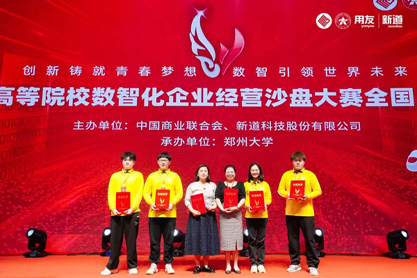 本网讯(通讯员:朱晓丹)近日,由中国商业联合会、新道科技股份有限公司联合主办,郑州大学承办的2023年全国高等院校数智化企业经营沙盘大赛(本科组)全国总决赛在河南郑州落下帷幕。来自郑州大学、福州大学、华东交通大学等本科高校的117支队伍参加了比赛,永利官网教师蒋毓萍、朱晓丹所带团队斩获全国三等奖。