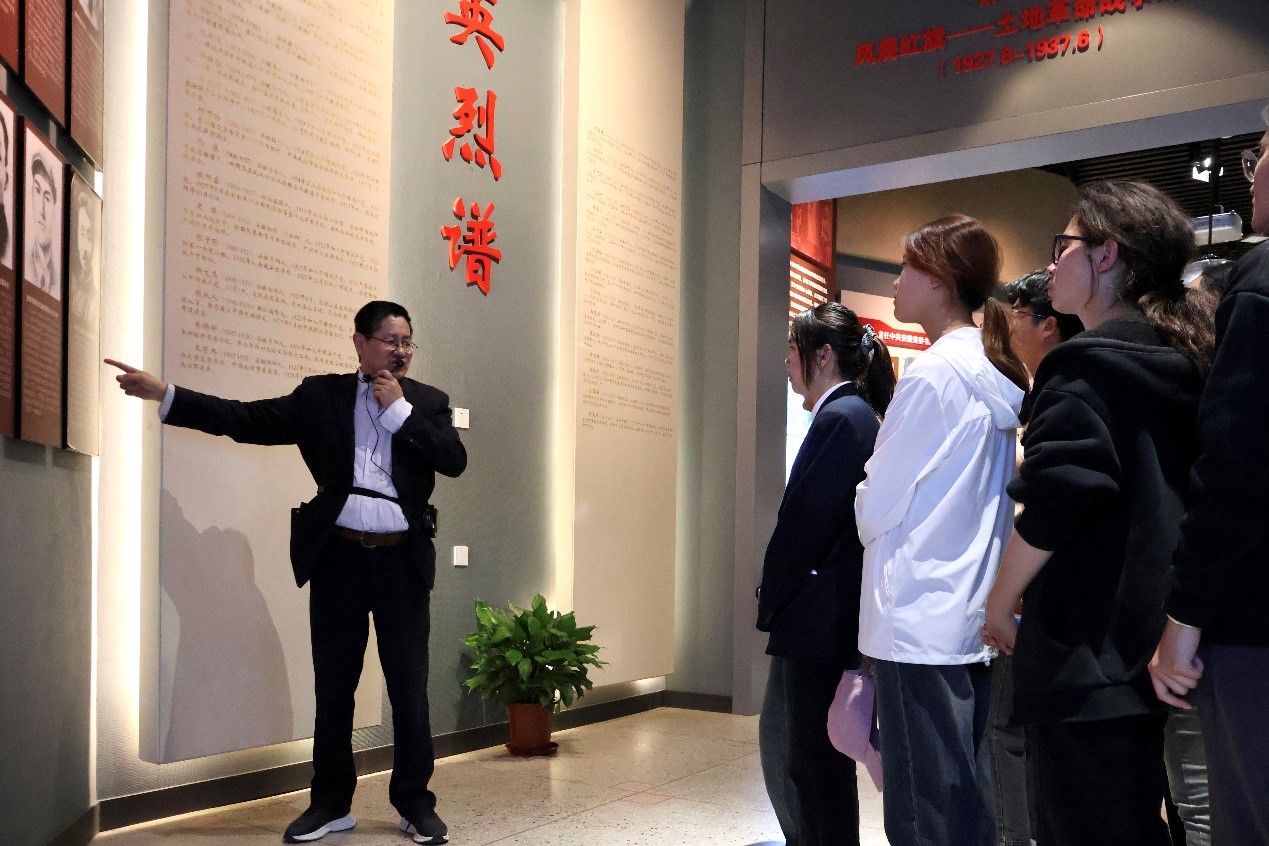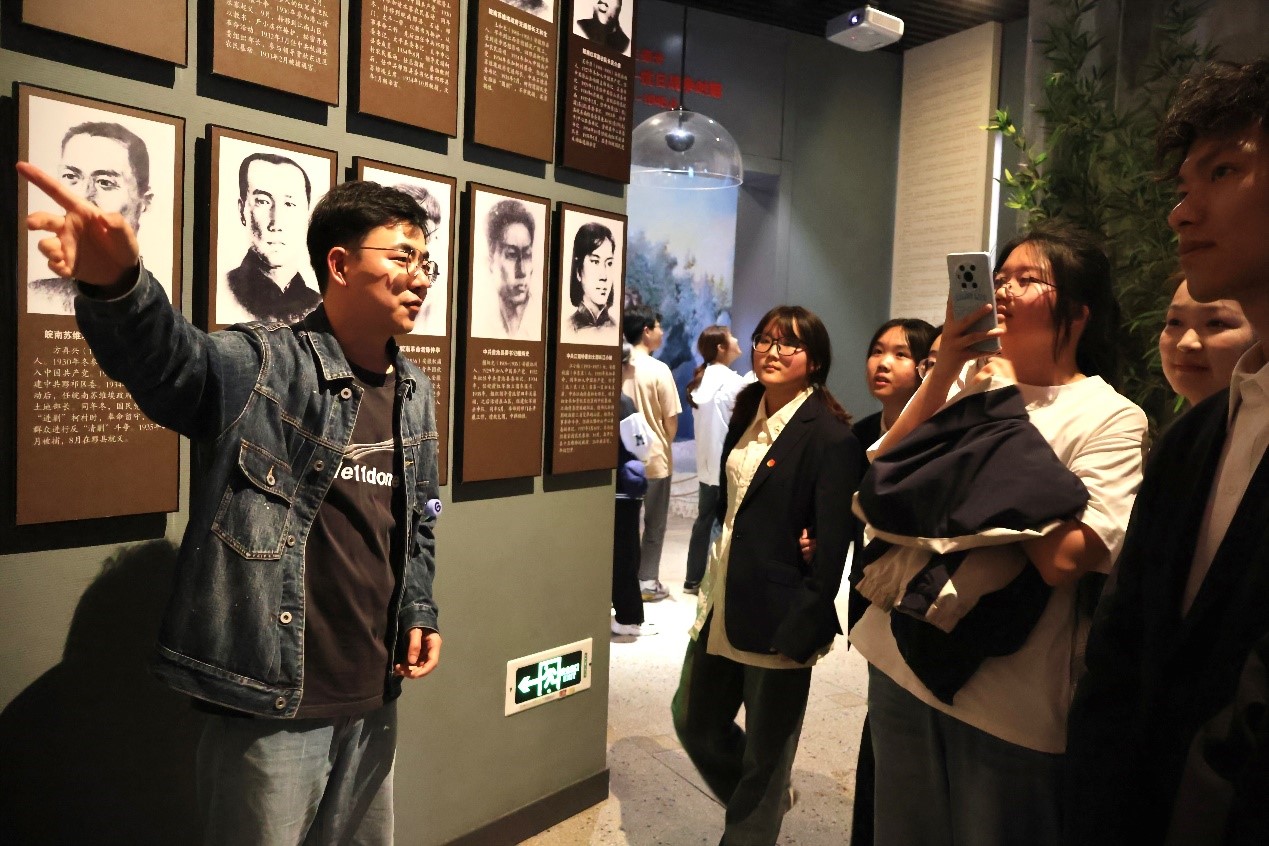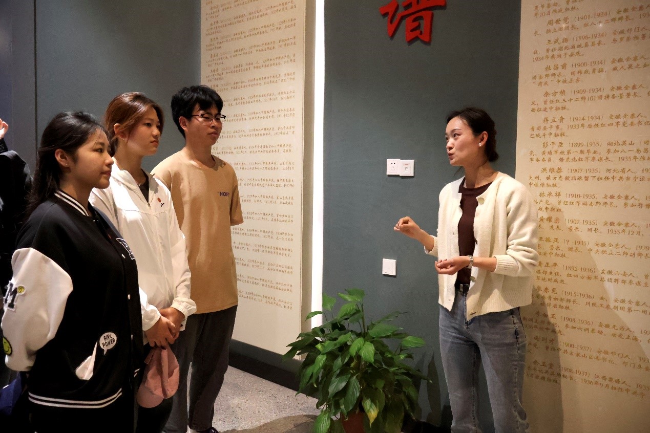 随后,师生们共同来到“安徽革命烈士事迹陈列馆”,赵东云老师作为主讲人为学生们全程讲解、答疑,随行的马克思主义学院教师王磊、夏娜娜等也积极参与其中,带领学生认真观看,积极思考、讨论陈列馆里的历史文献、老照片和革命故事。陈列馆内,师生们在此重温战火纷飞的革命历史,聆听英雄先烈的历史回音,寄托对革命烈士的深切哀思与无上崇敬。