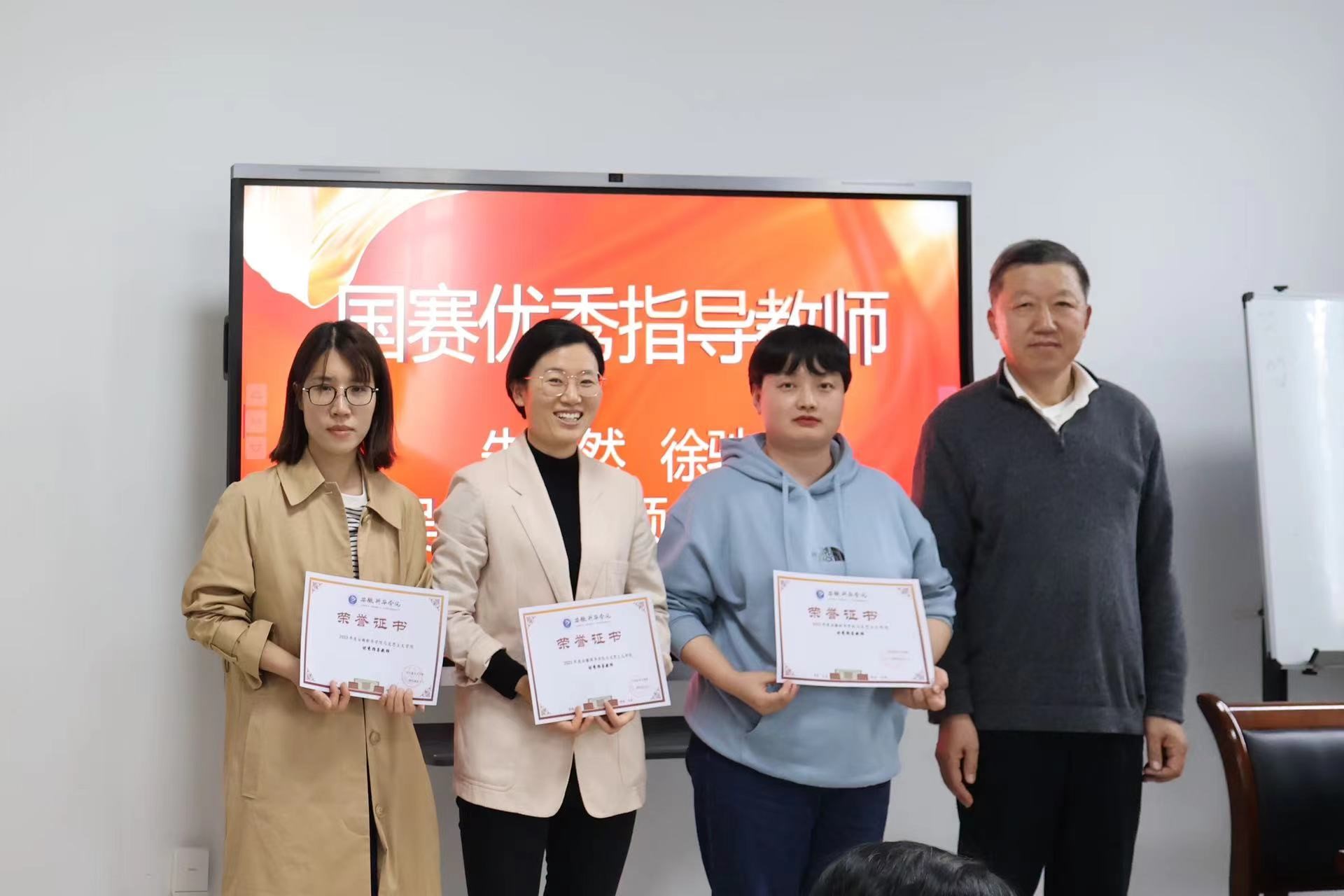 表彰会最后,对在第十二届教职工乒乓球比赛中为马克思主义学院争取荣誉的老师颁奖。董丽娟副院长对获奖者表示祝贺,并提倡广大教师积极响应习近平总书记勉励青年运动的号召,持续开展各类体育活动,推动校园精神文明建设。