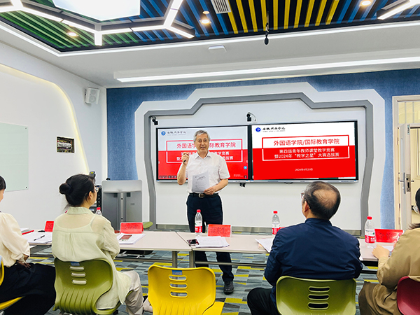 本网讯(通讯员:江雨、张丽)为提升青年教师的教学水平,助力青年教师加强教学改革、提升教育教学能力,帮助青年教师更好地站稳课堂,进一步打造业务精湛、充满活力的教师队伍,外国语学院/国际教育学院于2024年4月25日下午14:00在教10-101智慧教室举行第四届青年教师课堂教学竞赛暨2024年“教学之星”大赛选拔赛。外国语学院院长张杰、国际教育学院院长范东生、金怀梅教授、院长助理李怡嘉、系部主任郭丽、郝亮、教师发展中心主任张丽以及2022、2023年入职的青年教师参加了本次活动,活动由教师发展中心主任张丽主持。