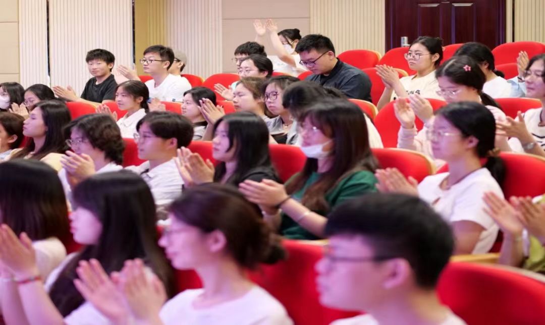 上午九点,讲座在教学楼8号三楼演播厅进行。前来听讲座的学生济济一堂,他们十分认真,很快就进入了角色。