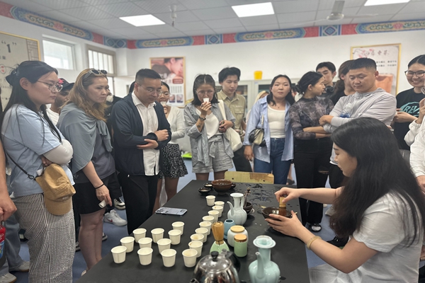 随后,留学生们参观茶艺时,一边赞叹茶道艺术,一边品味茶的味道,点茶等环节更让他们感到新鲜有趣。