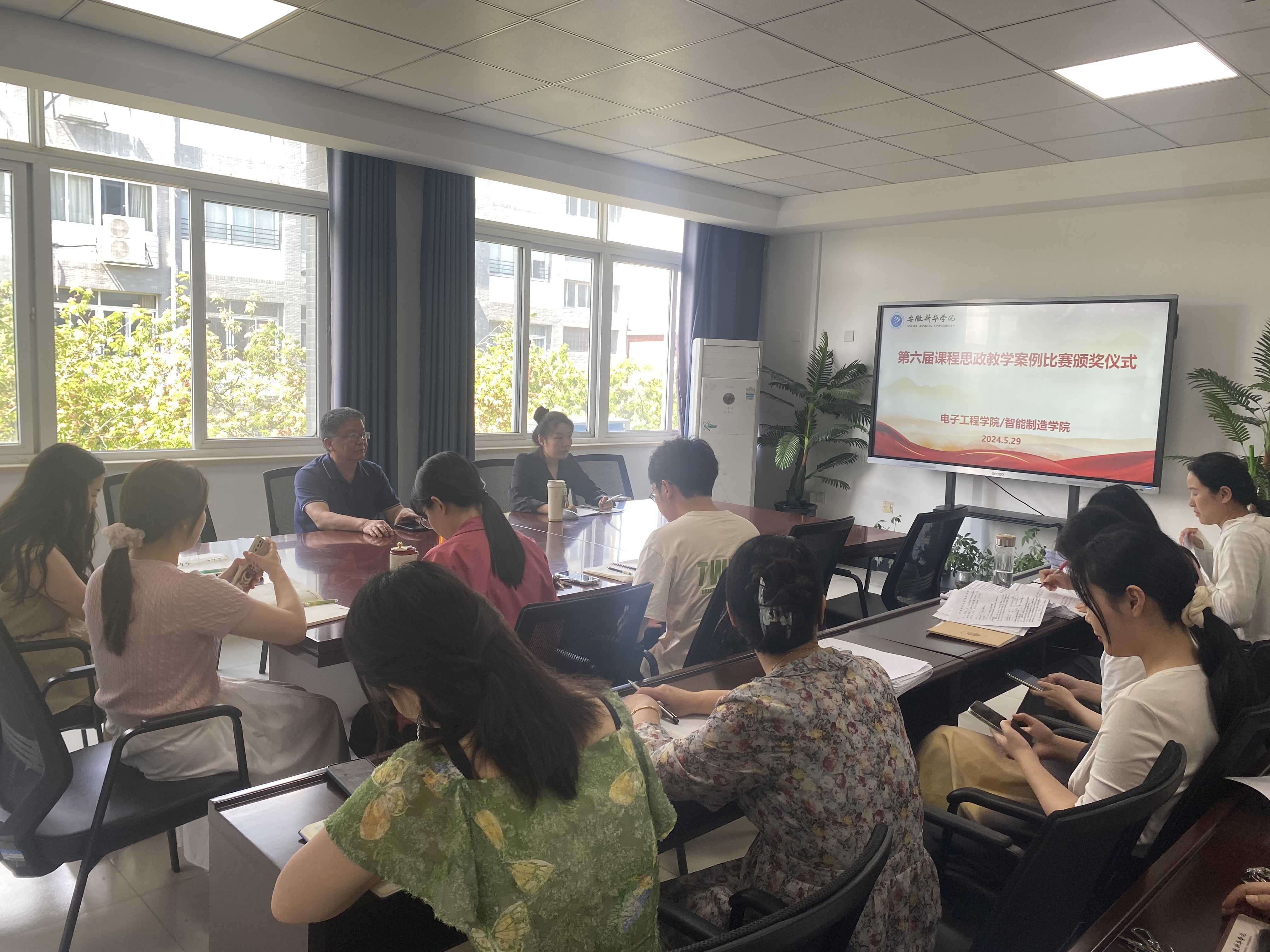 学院各系部高度重视此次比赛,积极组织系内教师报名参赛,合计共收集57篇课程思政案例参与评审。我院邀请了院内外专家组成院评审小组,对参赛课程思政案例开展评选,评选出一等奖3名,二等奖4名,三等奖3名,并于5月29日开展了“电子工程学院/智能制造学院第六届‘课程思政’教学案例比赛”颁奖仪式暨分享交流会。