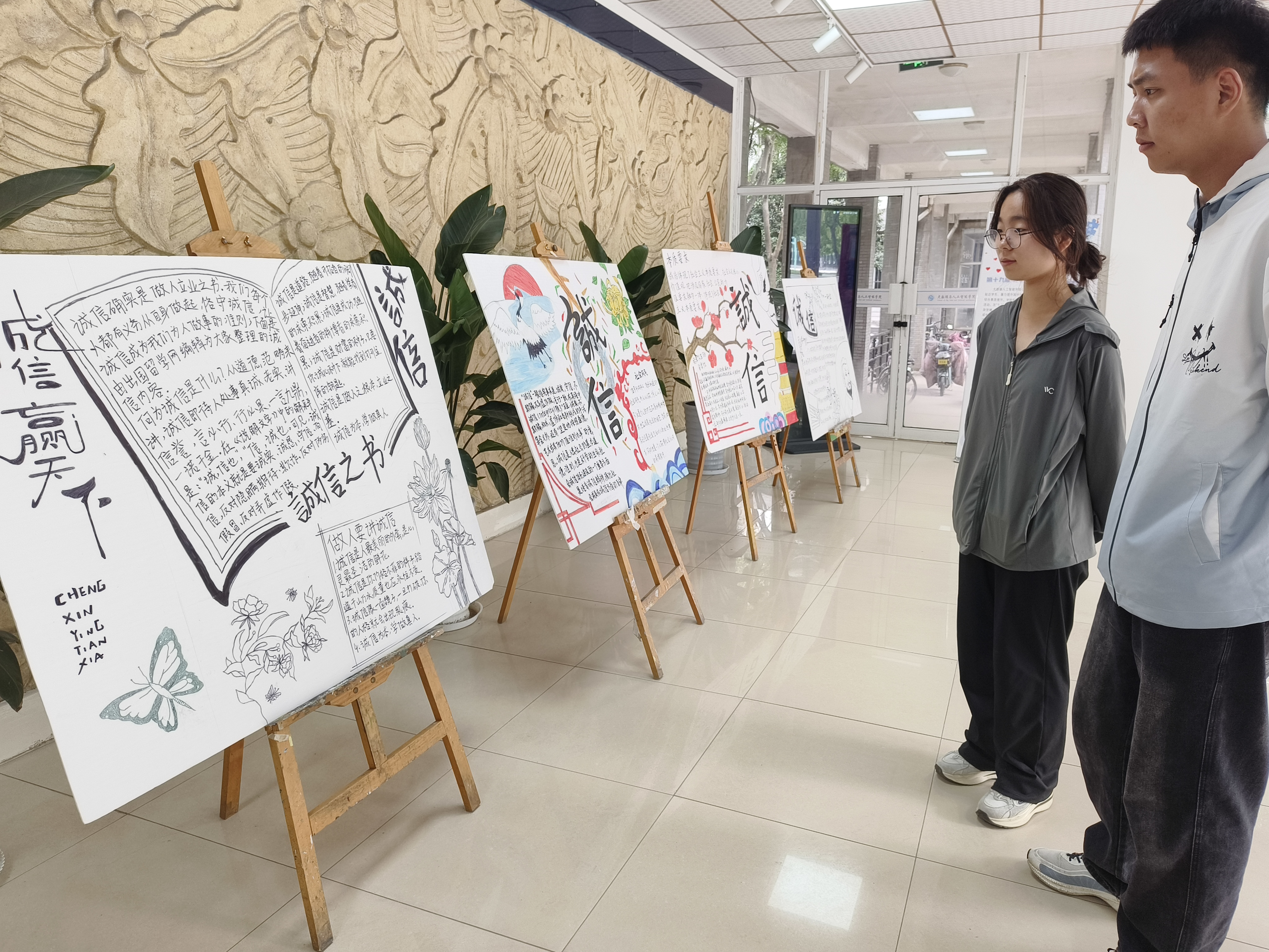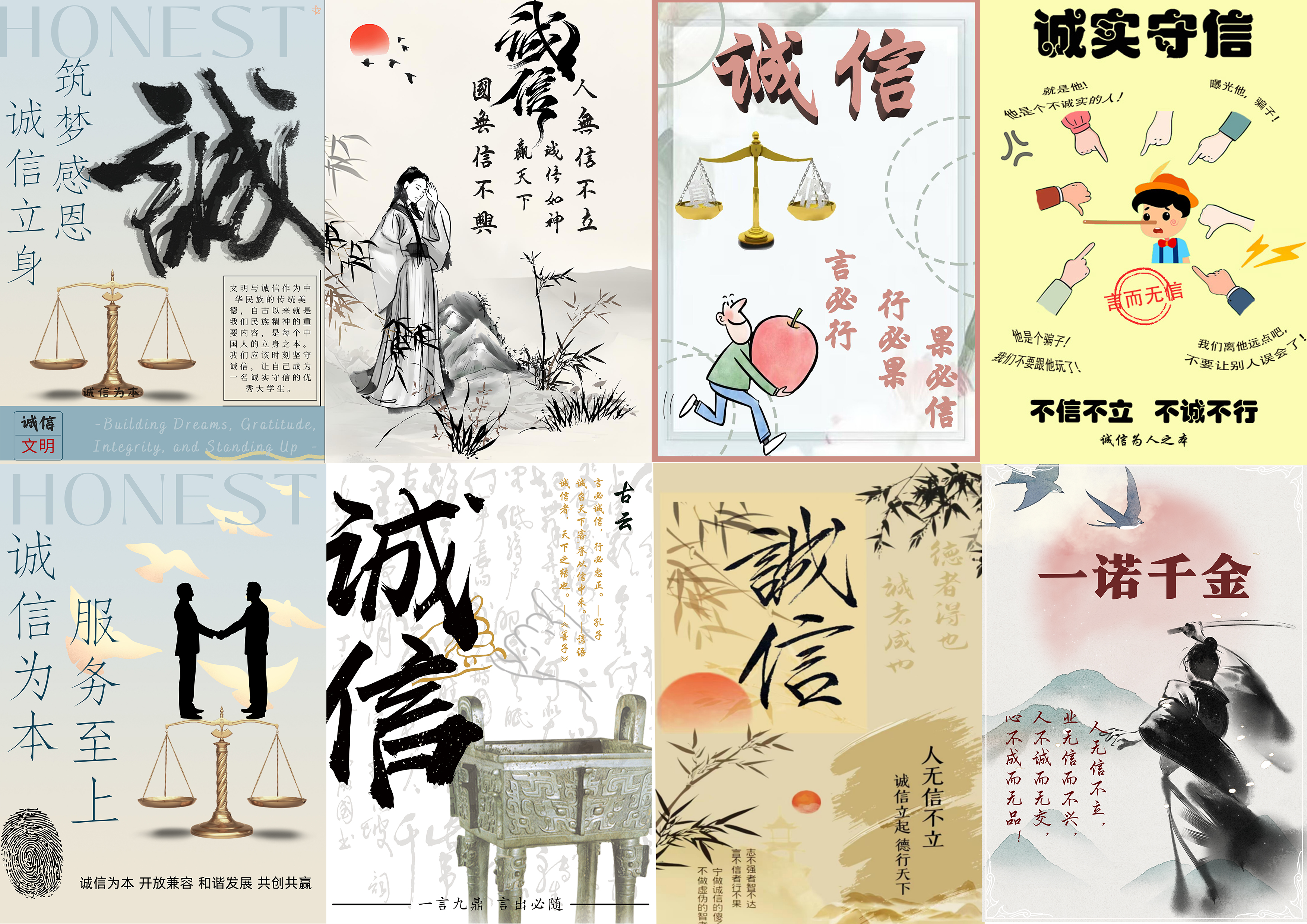 同时,诚信主题教育海报设计比赛也吸引了众多同学的积极参与。他们通过设计富有创意和寓意的海报,将“筑梦感恩 诚信立身”的主题以视觉的形式生动呈现出来。这些海报色彩鲜明、构图巧妙,让人过目难忘。经大赛评审组评审,评选出了一批优秀作品。