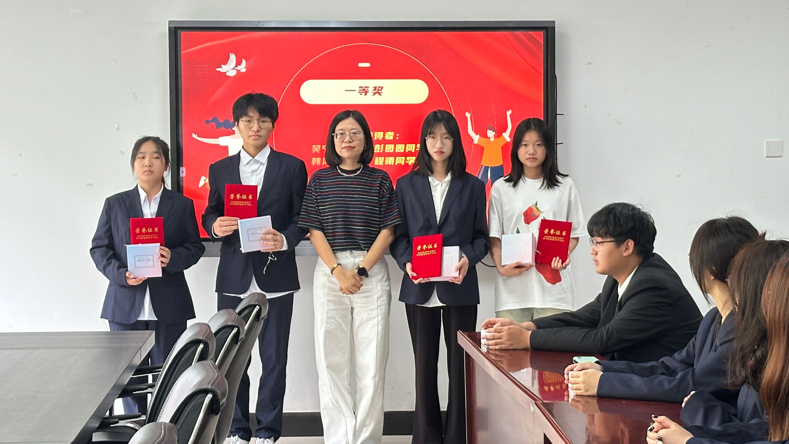 行政副院长魏高莉、学管秘书周刘湘和行政秘书张韬为获奖选手颁发证书和礼品,并合影留念。