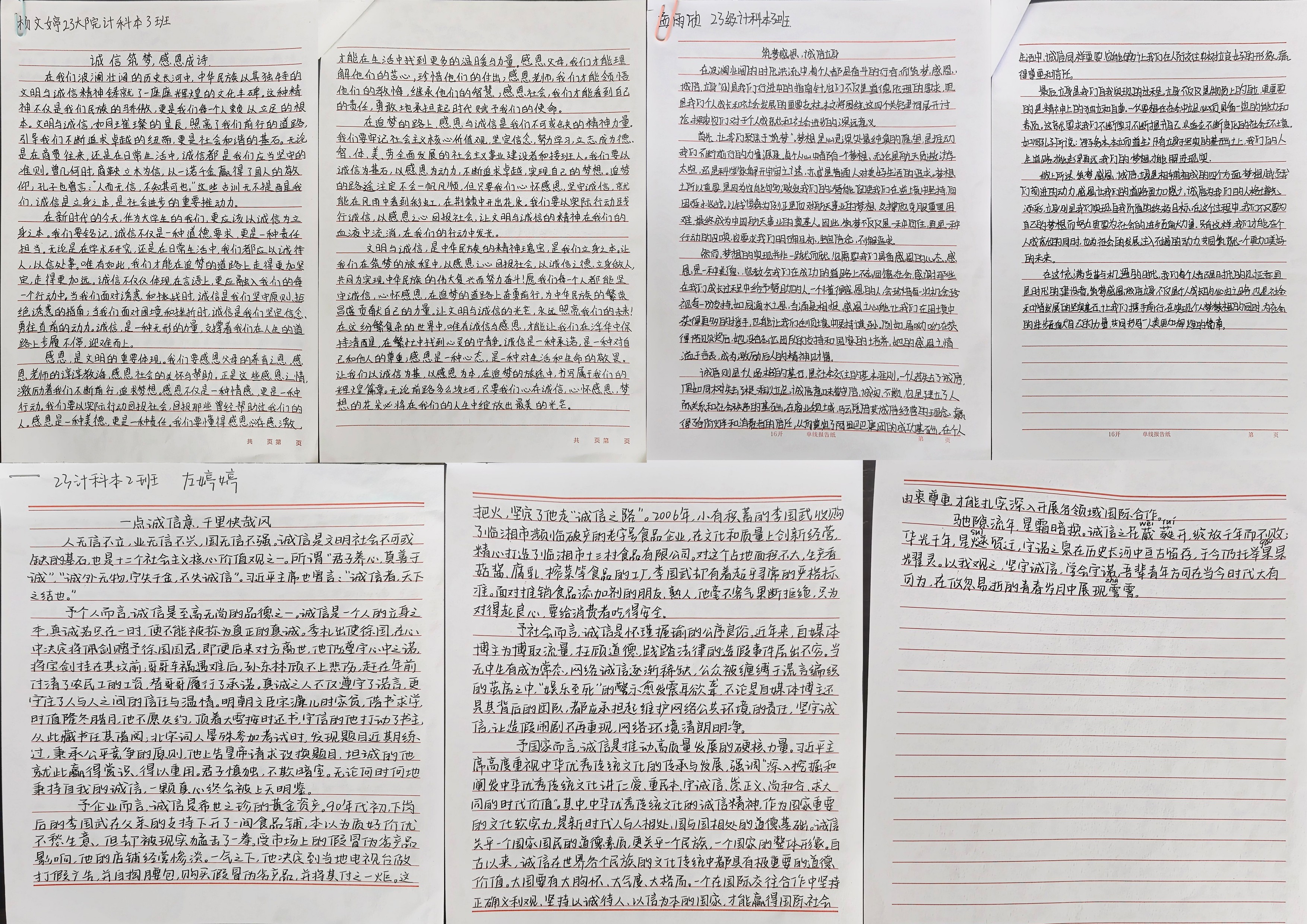 本网讯(通讯员:朱青青、张韬 )为进一步弘扬社会主义核心价值观,深化诚信主题教育,引导青年学生树立正确的道德观念和行为规范,大数据与人工智能学院于5月18日至5月30日举办“筑梦感恩,诚信立身”诚信主题教育系列活动。活动包括诚信主题征文和诚信主题教育海报设计比赛。活动得到了学院学子的积极响应和热情参与,他们纷纷拿起笔杆和画笔,用文字和图像表达自己对诚信的理解和感悟。