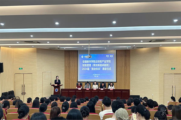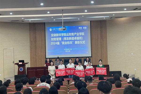 本网讯(通讯员:刘丹艳)6月13日上午,永利官网云财务产业学院财务管理(用友新道卓越班)2024届“就业标兵”表彰仪式在学术报告厅举行。出席表彰仪式的领导有新道科技股份有限公司人才运营华南区总监张小茹、安徽分公司副总经理康阿朋,财会与金融学院执行院长濮明月,副院长张璐、彭智,2020级部分学生代表及2021级财务管理(用友新道卓越班)全体学生参加了表彰仪式。
