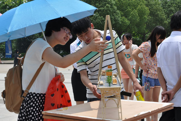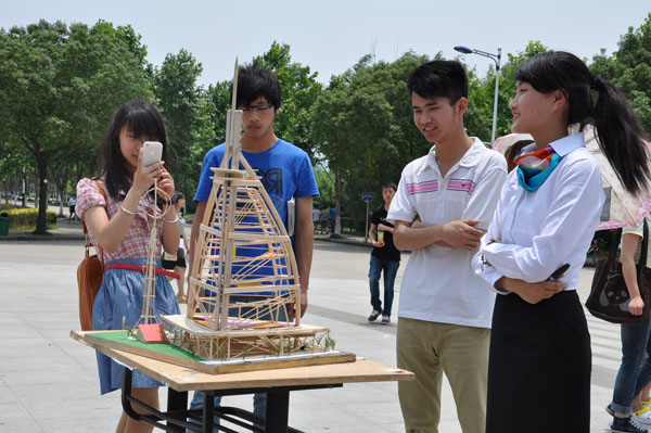 本网讯(牛山林,摄影:杨志敏)6月13日,土木与环境工程学院在翰林广场举办工业设计作品展。本次作品展以“工业设计,让美进入生活”为主题,展出了平面构成、色彩构成、立体构成、速写等100多件优秀作品,吸引了众多师生到场观看。