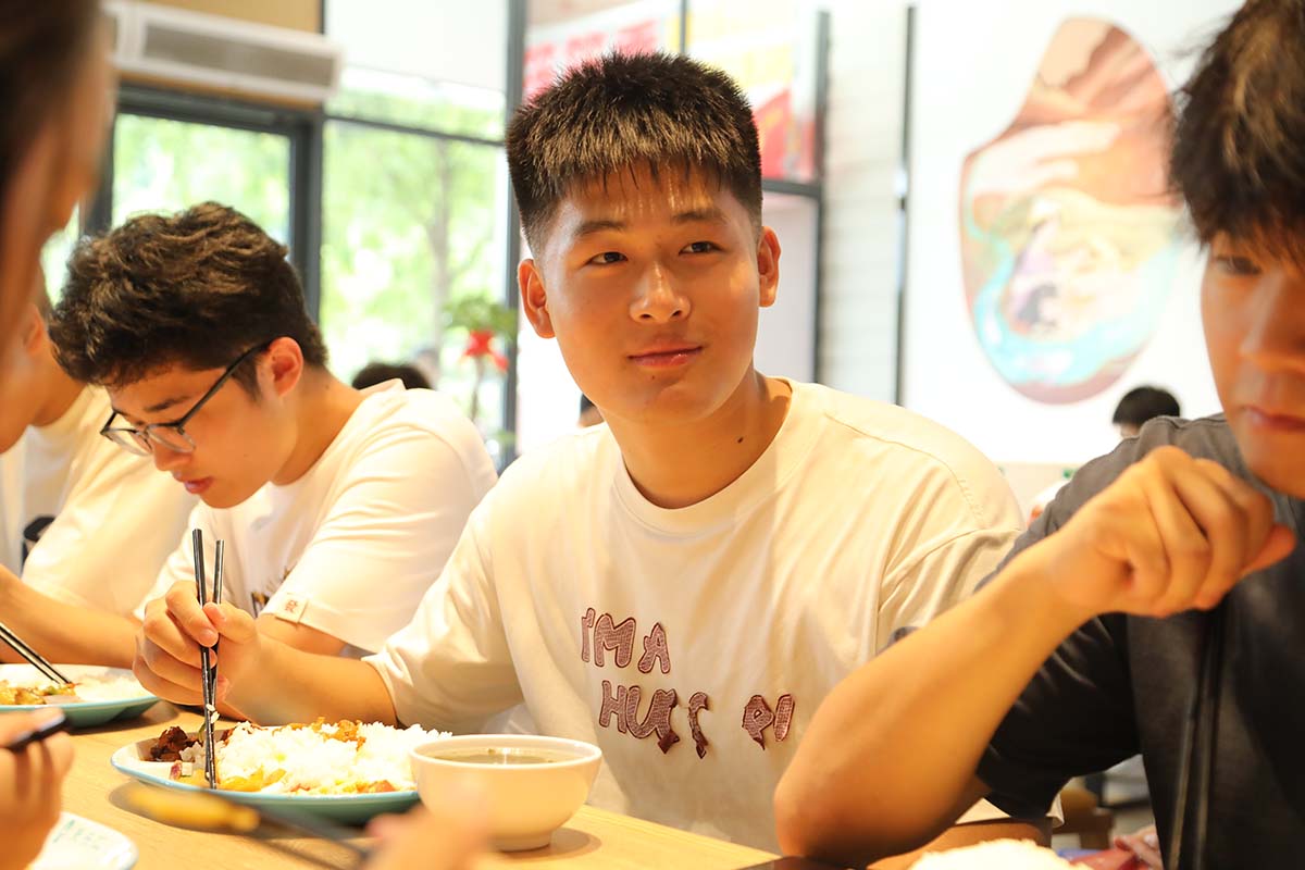 电子工程学院/智能制造学院的刘璇同学和刚刚认识的室友一起走进食堂,他们一边聊着家乡和对学校的第一印象,一边寻找着第一餐想吃的菜品。刘璇说:“对于大学的第一餐,我是无比期待的。它不仅仅是一顿饭,更像是大学生活的一个小小仪式,标志着新生活的开始,也是和室友相互了解的一个好机会。”吃完饭后他们感觉:“食堂菜品‘荤素搭配,好吃不贵’。”