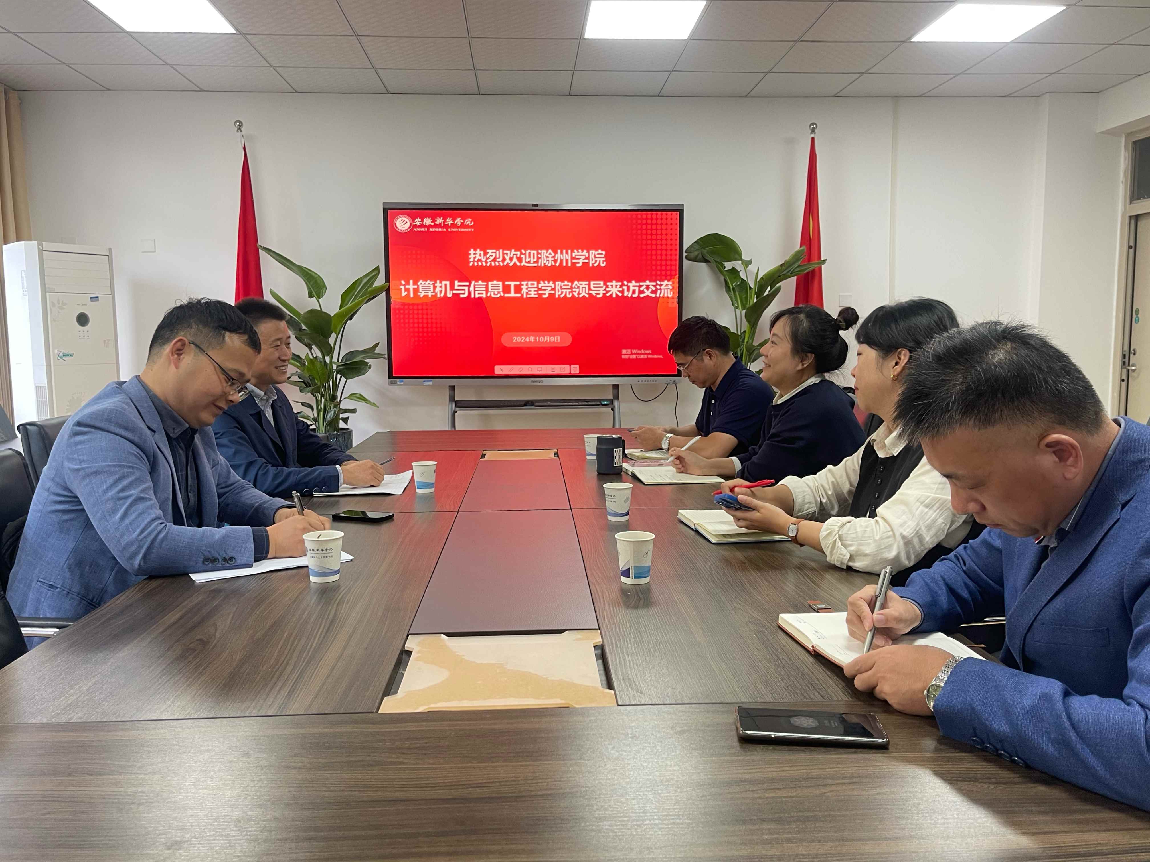 本网讯(通讯员:李钦钦)10月9日,滁州学院计算机与信息工程学院副院长杨斌一行来校就电子信息硕士点建设工作开展交流研讨,电子工程学院/智能制造学院执行院长赵倩青、副院长白志青,大数据与人工智能学院执行院长郑妮、副院长万家华参加会议。