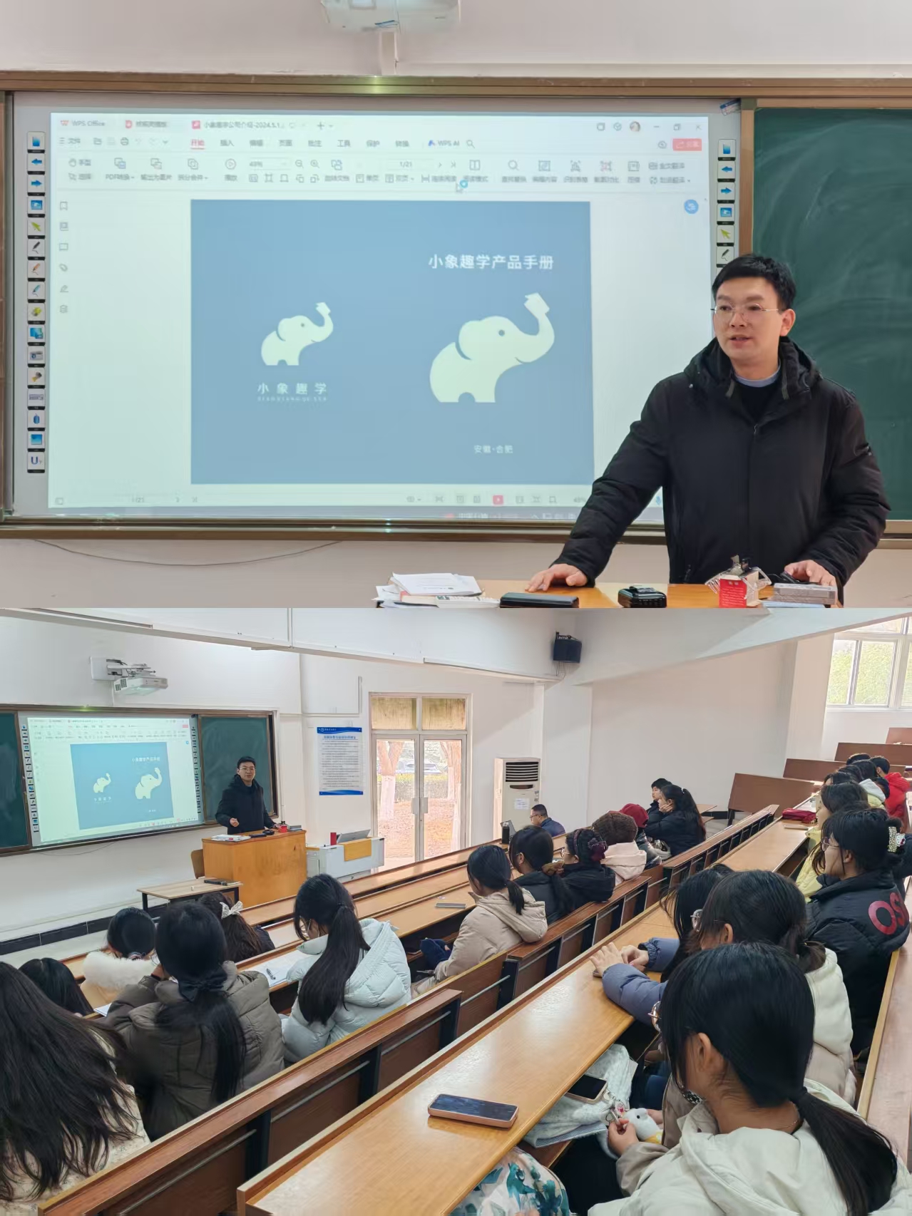 会上,小象趣学科技有限公司联合创始人、副总经理宋润朝深入浅出地为 2025 届毕业生们详细介绍了企业独特的优势,包括其在行业内领先的技术研发能力、成熟且富有创新性的商业模式、广阔的市场份额以及积极向上的企业文化等方面,使同学们对企业的整体实力有了深入的了解。