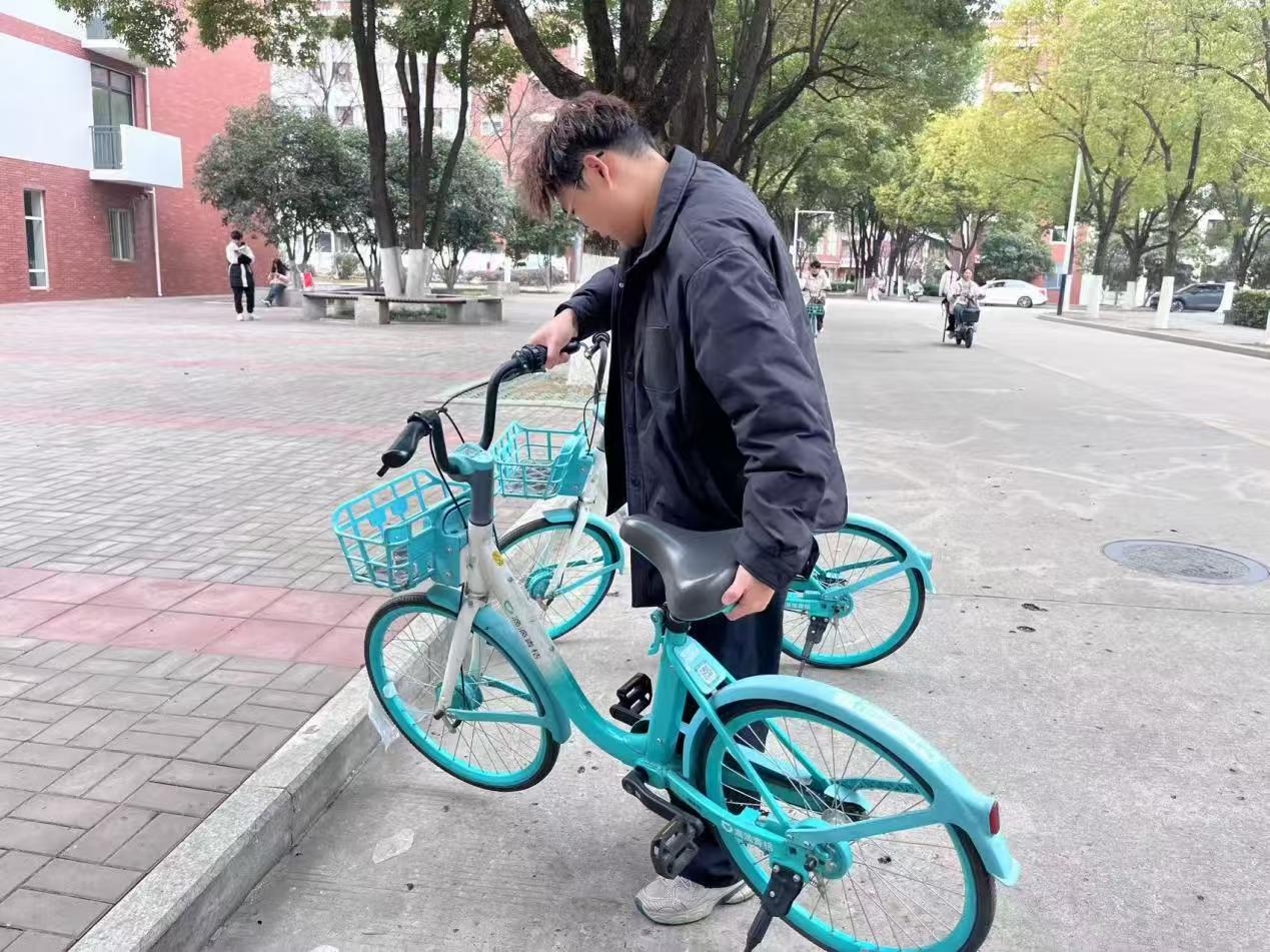 活动分为三个小组有序开展。第一小组负责校园共享单车整治工作,党员们将散落在各处的共享单车统一归置到指定停放区域,并进行整齐摆放,有效改善了校园交通秩序。第二小组对学院会议室进行全面清洁,认真擦拭桌椅、整理物品、清扫地面,确保会议室环境整洁有序。第三小组重点清理教八四楼平台,对长期堆积的物资进行分类整理,清除卫生死角,使平台环境焕然一新。